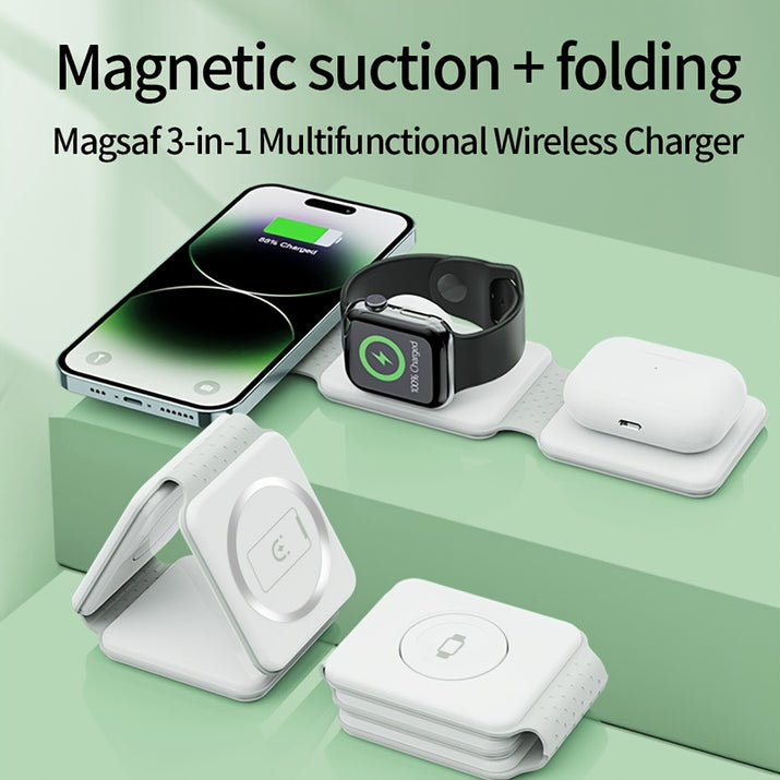 Lightweight 3-in-1 Wireless Charging Station, Foldable, Easy to Carry, No Battery Included